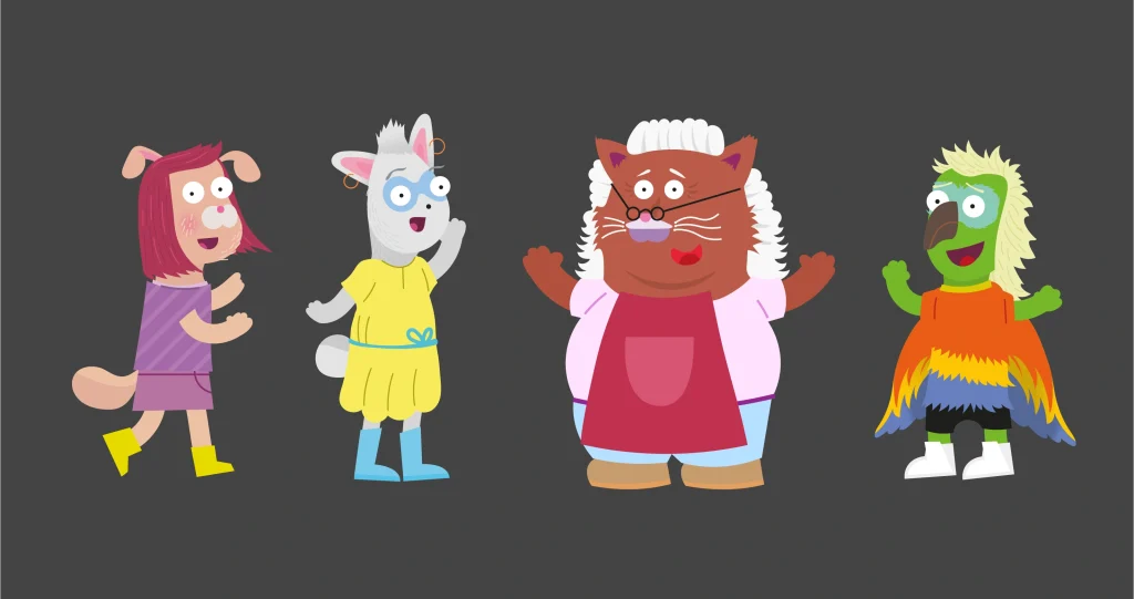 The characters went through a lot of iterations. Each of them has their own unique look and character. They’re easy to identify. Jojo is more courageous, while Hellientje is a bit more of a scaredy cat. Katrientje, the lady who helps them, gives off cosy grandma vibes. Paul the Parrot projects an image of confidence and determination. But is it just a façade?