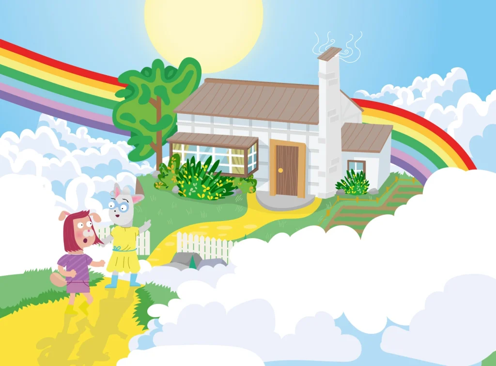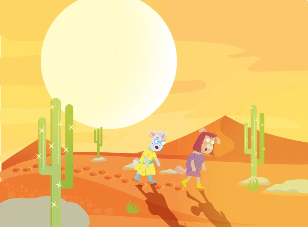 The story, really, is simple. It tells the story of the two mommies, Jojo en Hellientje, who want to have a baby. Their angry neighbour says that they can’t, because they’re both mommies. But they are not discouraged by this. They go on a long quest to seek out help. After they traverse the desert, and climb the tallest mountains, they sleep under the stars. Finally, they reach Paul the Parrot, who is more than happy to help them.
